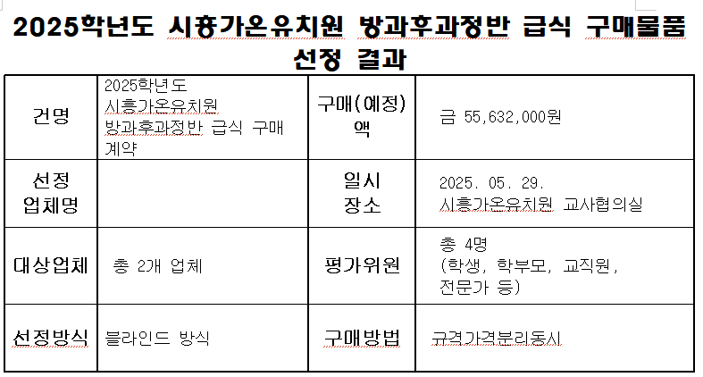 [ÀϹÝ] 2025Çг⵵ ½ÃÈï°¡¿ÂÀ¯Ä¡¿ø ¹æ°úÈİúÁ¤¹Ý ±Þ½Ä ±¸¸Å¹°Ç° ¼±Á¤ °á°úÀÇ Ã·ºÎÀ̹ÌÁö 1