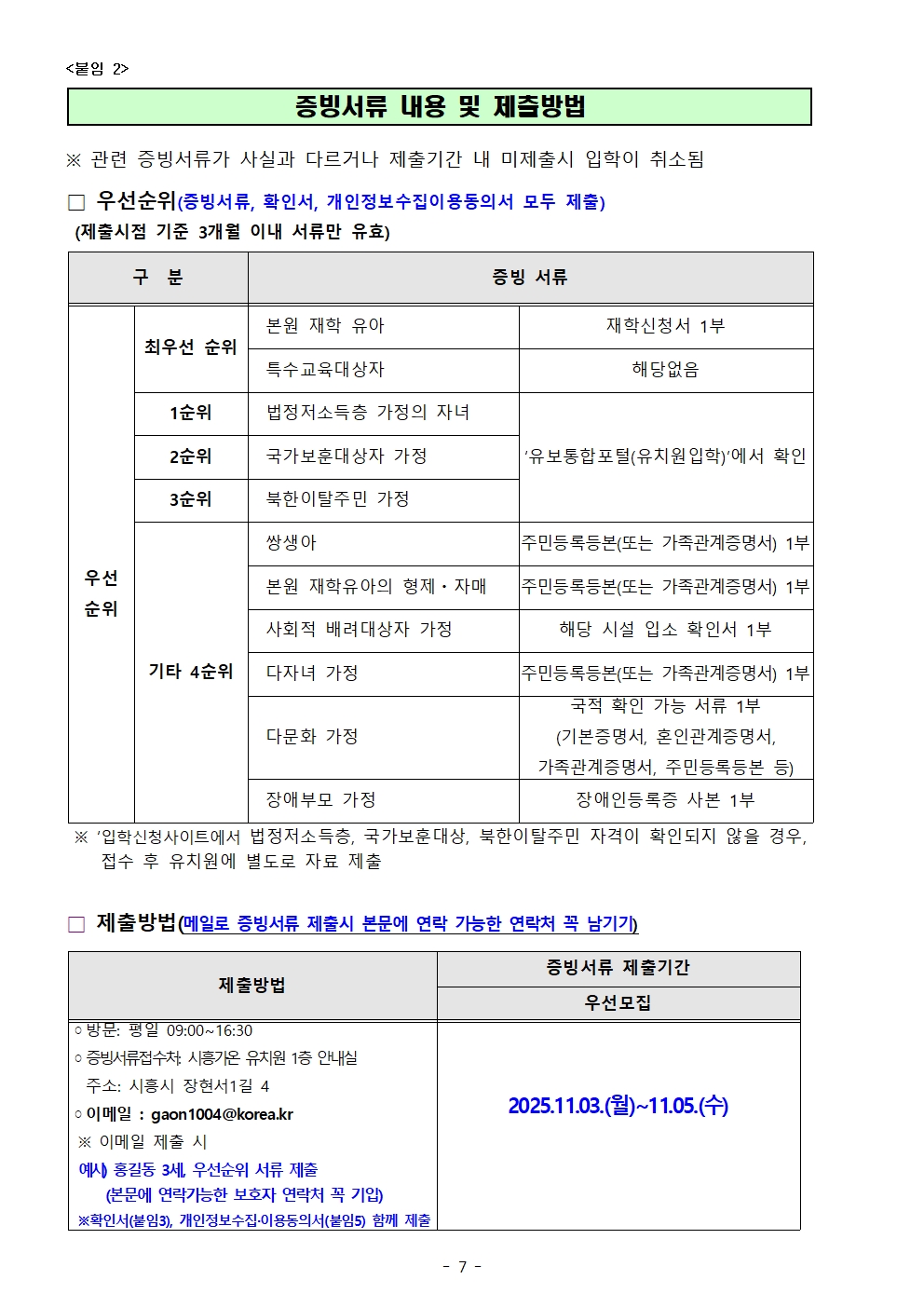 2. ¿ì¼±¸ðÁý ¼¼ºÎ»çÇ× ¹× Á¦Ãâ¼­·ù