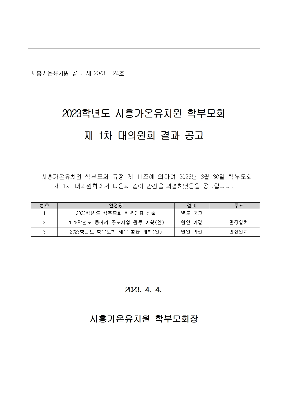 2023Çг⵵ Á¦1Â÷ ´ëÀÇ¿øÈ¸ °á°ú¸¦ ºÙÀÓÆÄÀϰú °°ÀÌ °ø°íÇÕ´Ï´Ù.