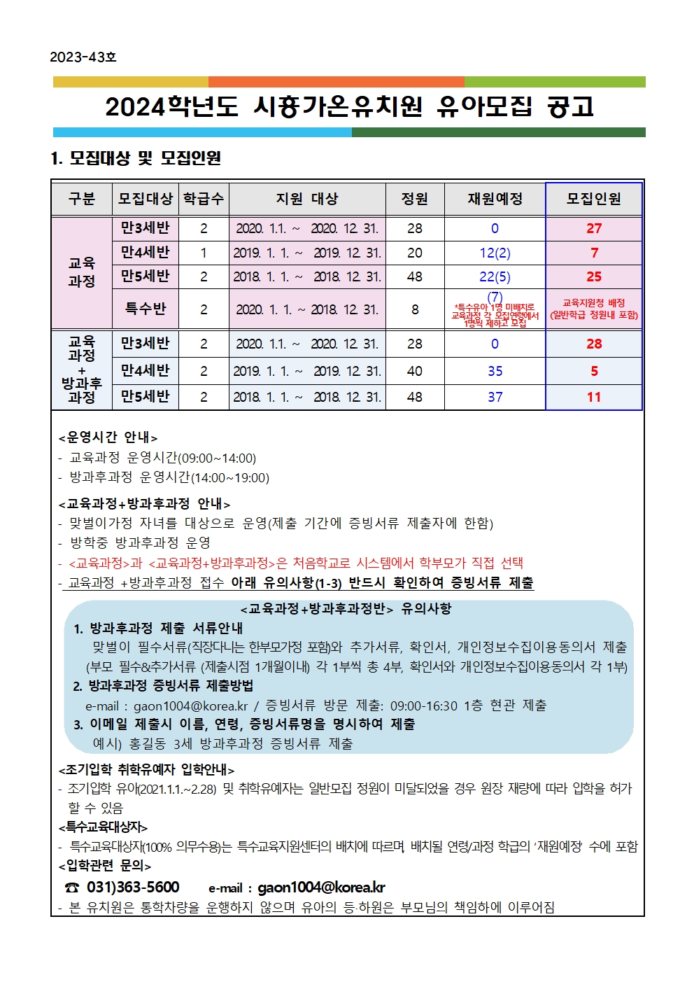 2024Çг⵵ ½ÃÈï°¡¿ÂÀ¯Ä¡¿ø À¯¾Æ¸ðÁý(ÀϹݸðÁý) ½Ç½Ã